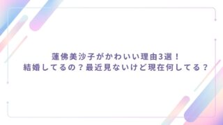 蓮佛美沙子がかわいい理由3選!結婚してるの?最近見ないけど現在何してる?