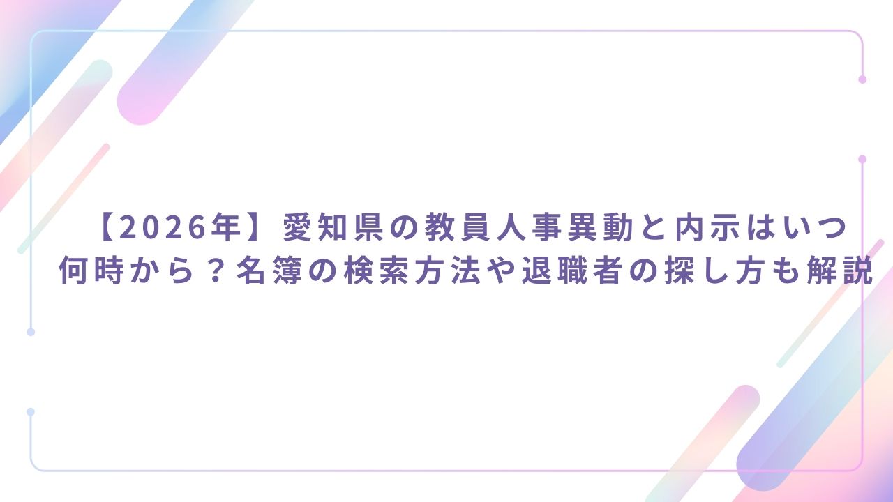 【2026年】愛知県の教員人事異動の発表と内示はいつ?名簿の検索方法や退職者の探し方も解説