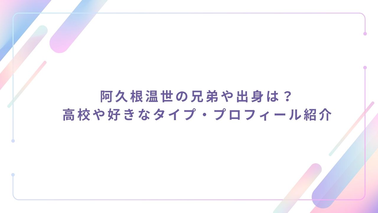 阿久根温世の兄弟や出身は?高校や好きなタイプ・プロフィール紹介