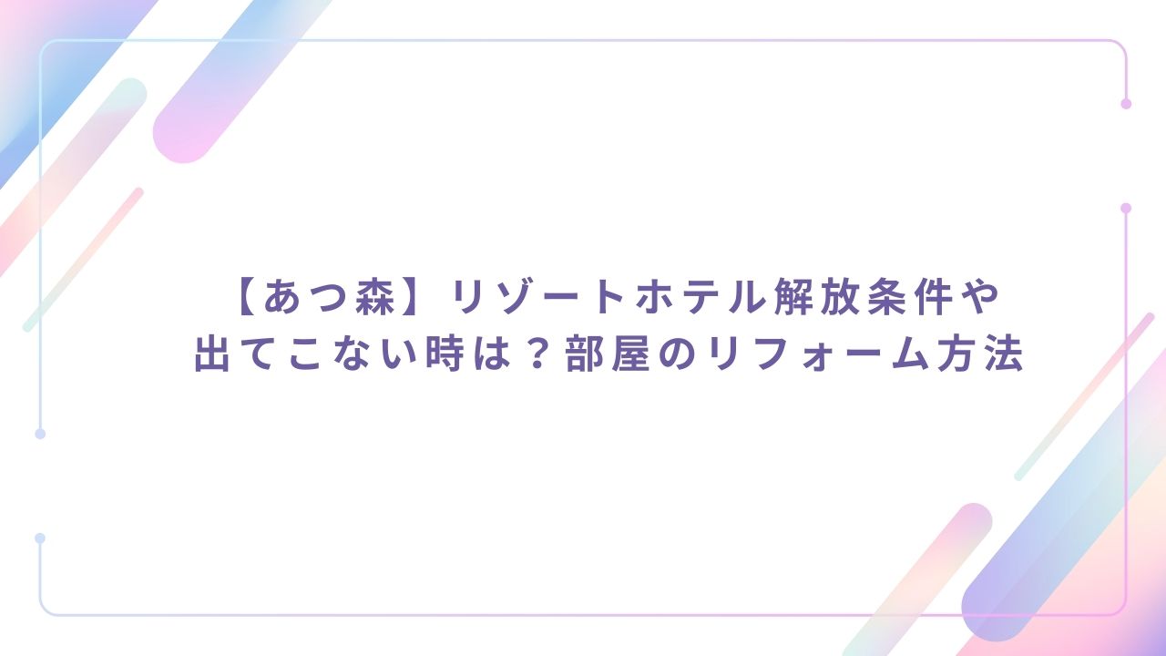 今回は、リゾートホテル解放条件や出てこない時の対処法、部屋のリフォームについてまとめていきたいと思います。