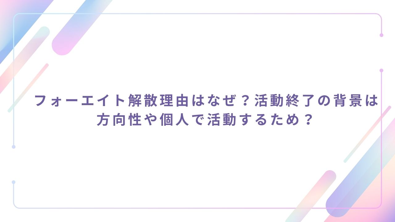 フォーエイトの解散理由には、公式での発表とファンの推測の二つの側面があります。