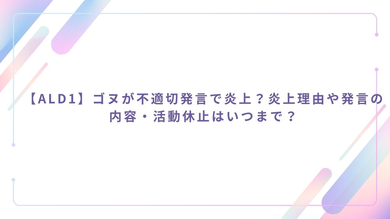 ALD1のゴヌさんが不適切発言によって炎上し、活動休止に至った騒動の要点をまとめます。
