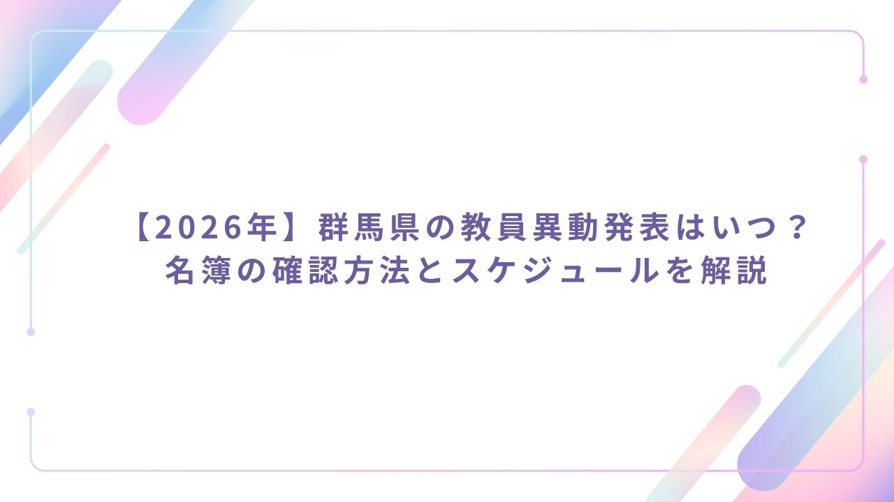 今回の記事では、2026年の群馬県の教員異動について、発表日の予想やおおまかに公開はいつになるのかなど解説していきたいと思います。