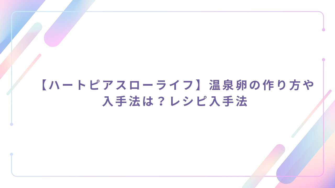 【ハートピアスローライフ】温泉卵のレシピ入手法