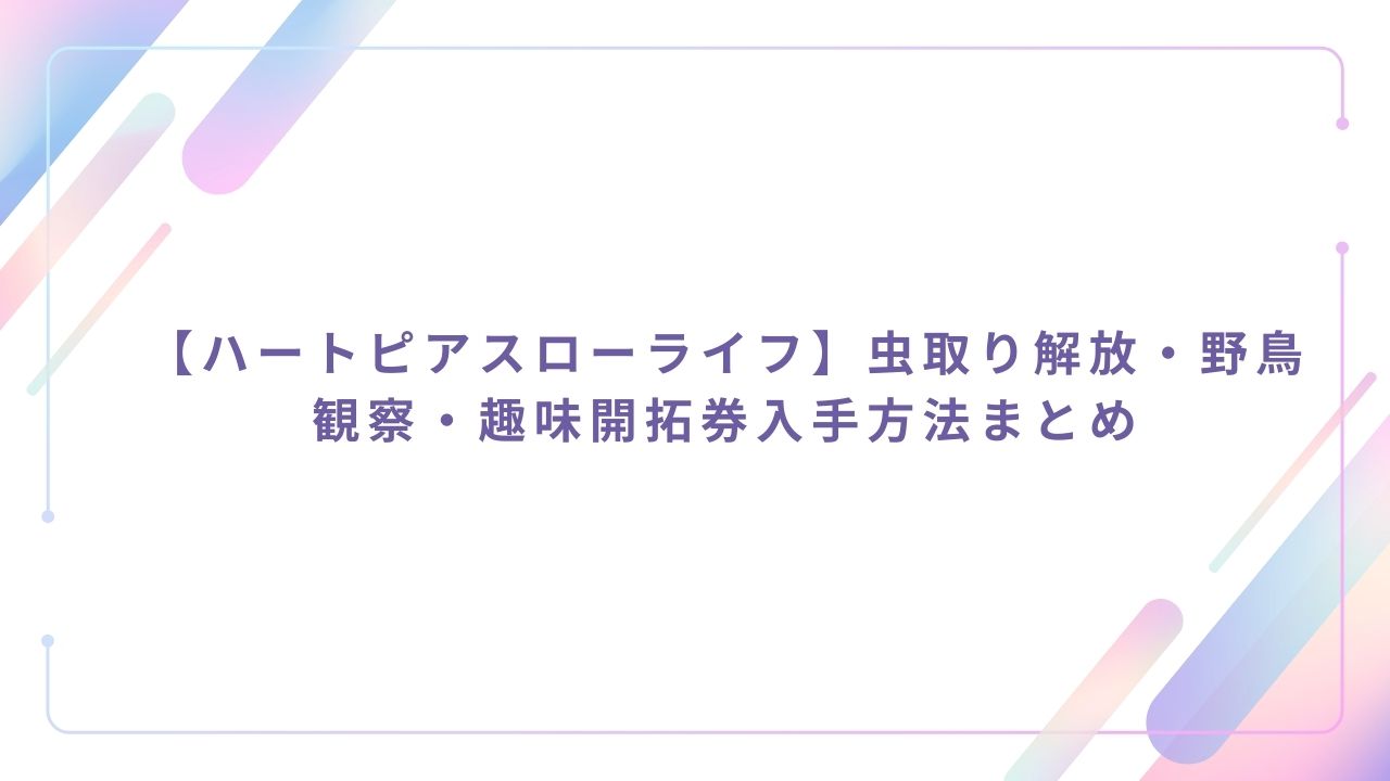 みなさんが疑問に思う点として、虫取りや野鳥観察の解放タイミングや方法・趣味開拓券の入手方法などについてかと思います。