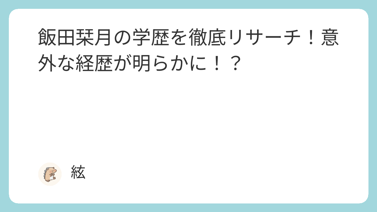 こんにちは、絃と申します。さっそくですが、タイトルにある通り飯田栞月さんの学歴について、