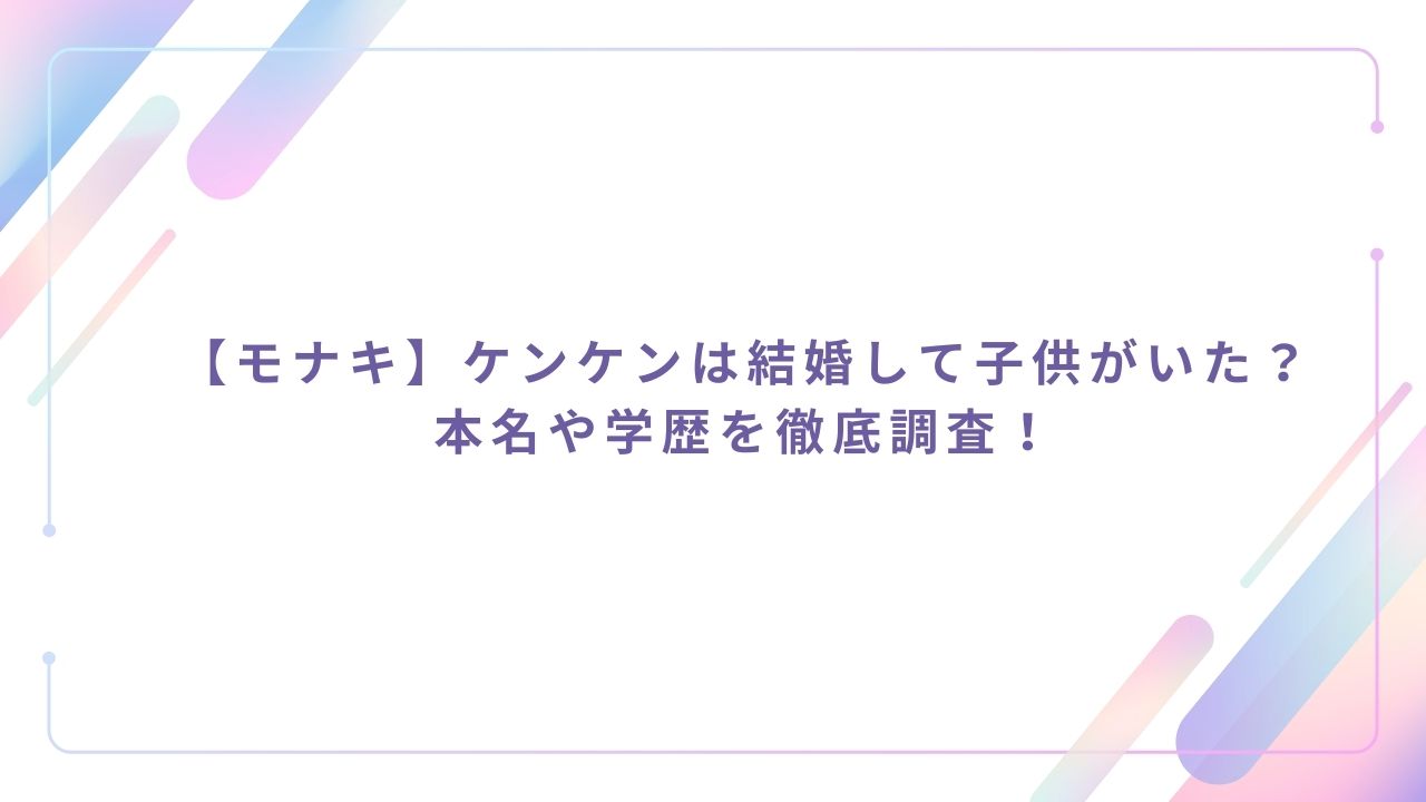 【モナキ】ケンケンは結婚して子供がいた?本名や学歴を徹底調査!