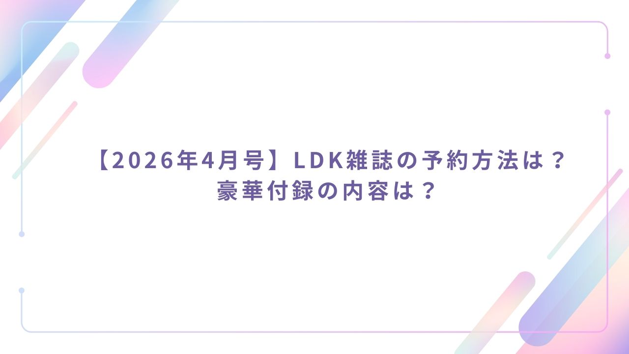 2026年4月号の「LDK the Beauty(エルディーケー ザ ビューティー)」は、2026年2月20日発売で、豪華特典がついているため、おそらく予約殺到が予想されます。