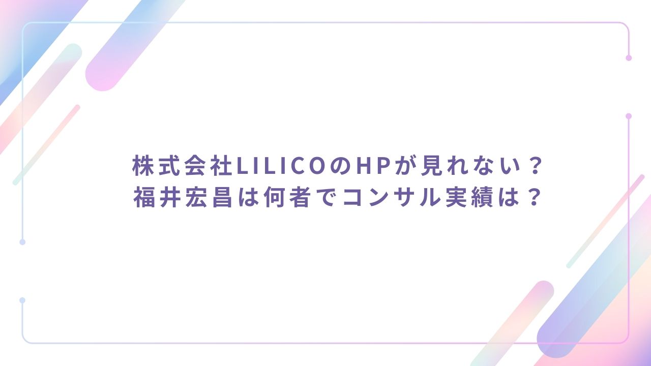 今回は、株式会社LILICOのホームページが見れない理由、福井宏昌さんのプロフィール、コンサル実績などまどめていきたいと思います。