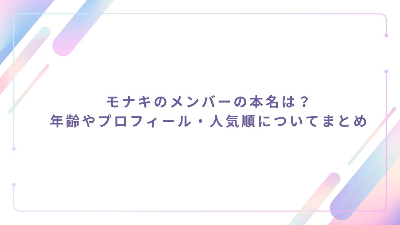 今回は、モナキのメンバーの本名、年齢やプロフィール、人気順についてまとめていきたいと思います。