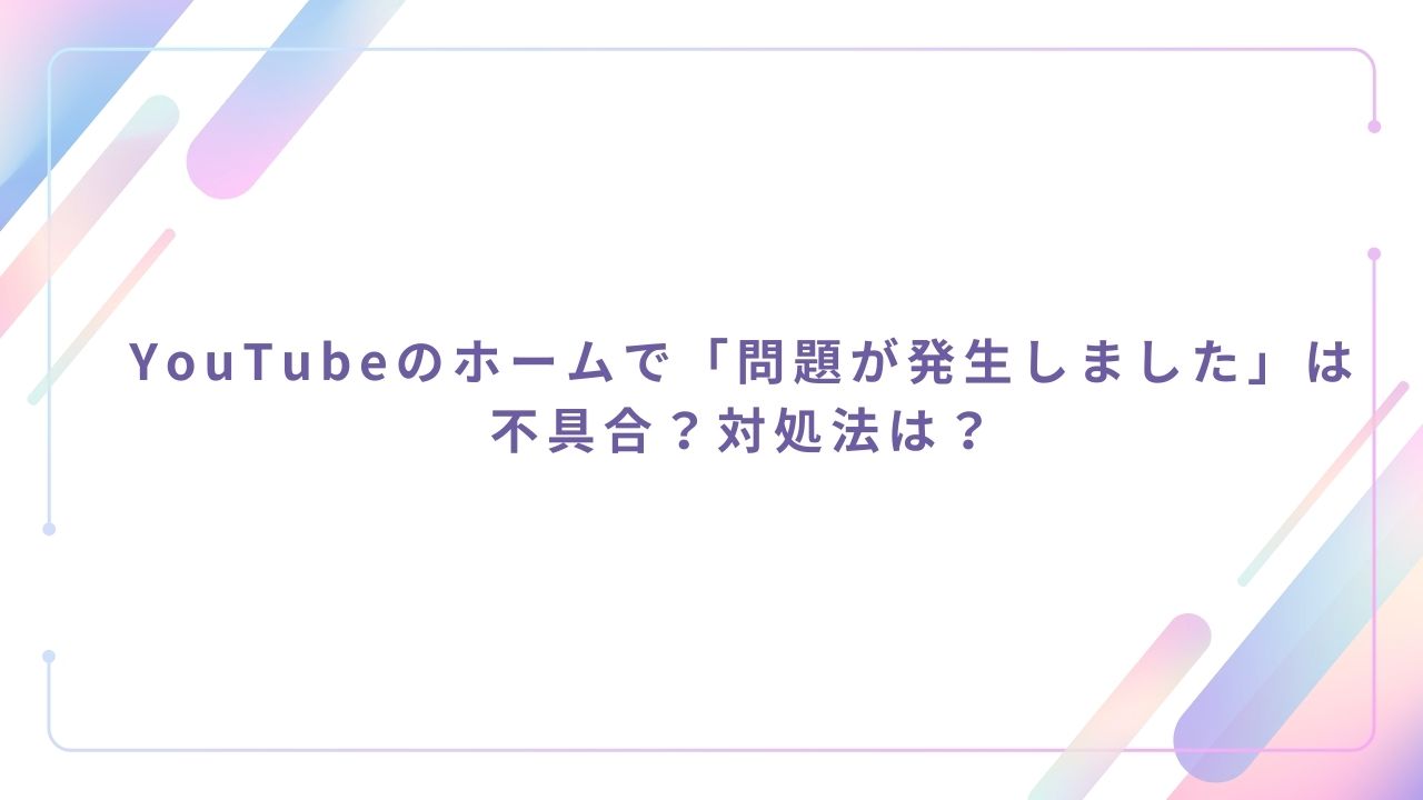 YouTubeホームでの「問題が発生しました」は、ユーザー側ではなく、