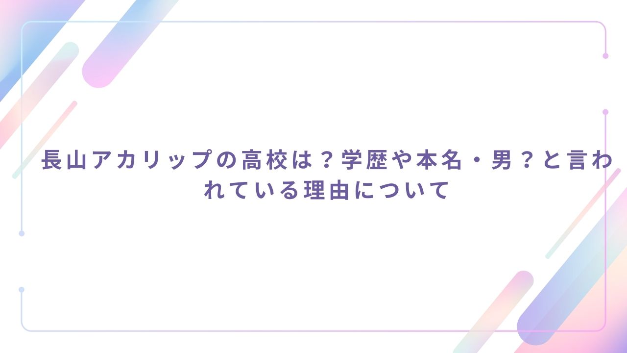 長山アカリップさんの高校についてですが、高校は卒業されていますが、高校名まで公表はされていません。