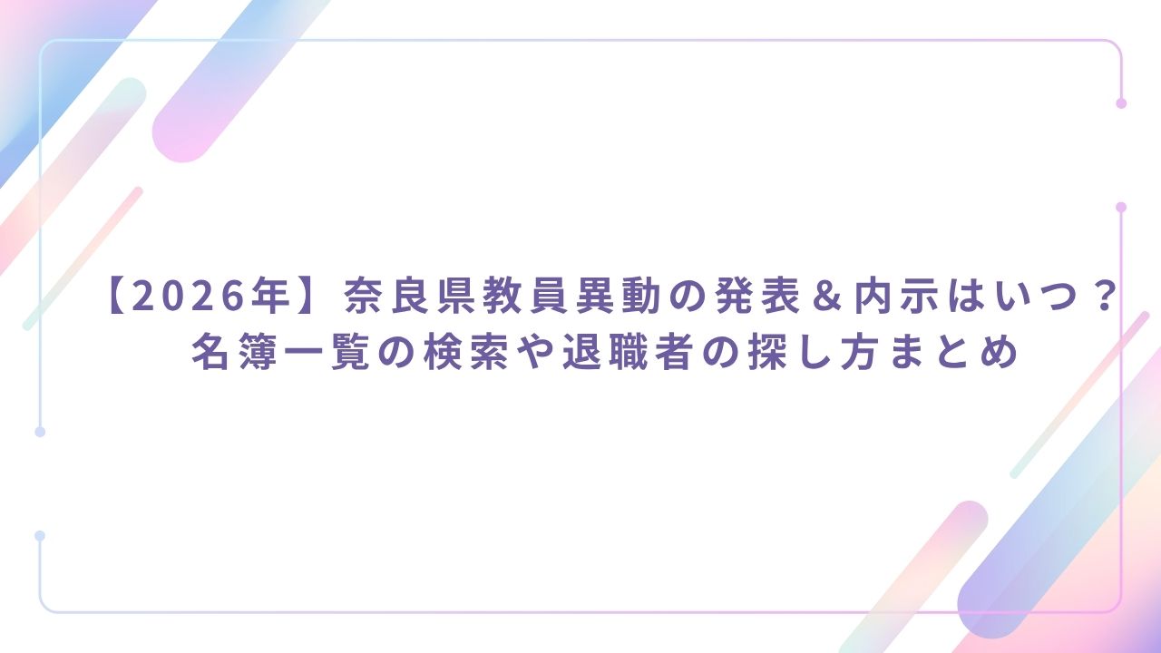 この記事では、令和8年度(2026年)の奈良県教員人事異動について、ネット上の噂の真偽から、ネットでの検索方法、退職される先生の探し方まで徹底的にまとめました!