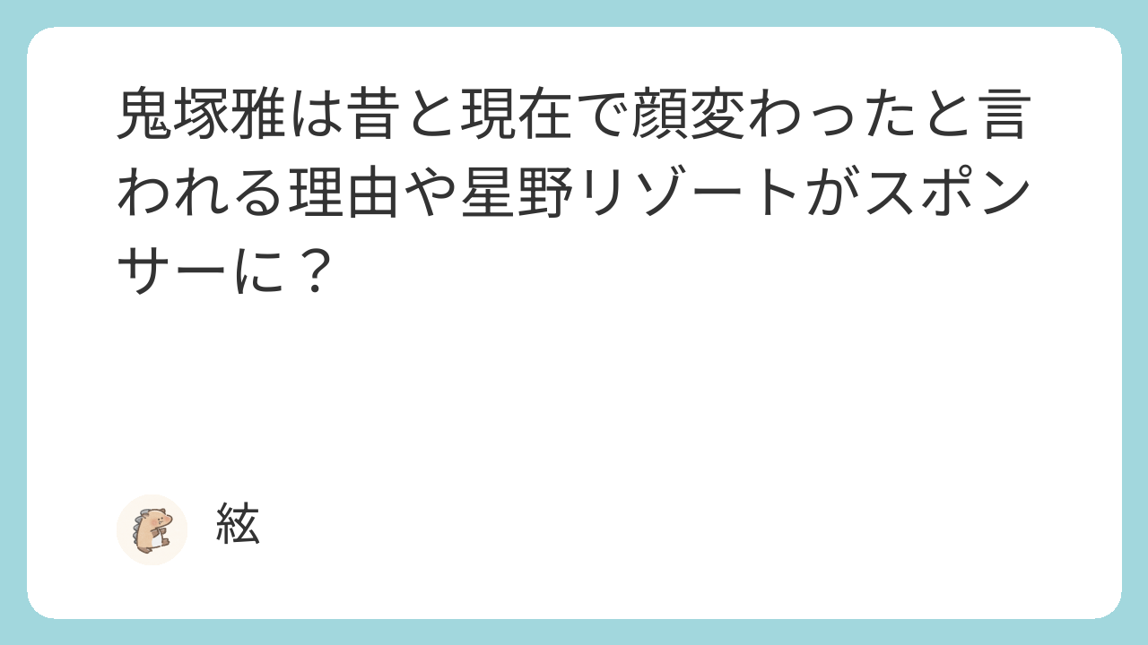 今回は、鬼塚雅選手の昔と現在の比較や、よく耳にする星野リゾートとの関係性について迫っていきたいと思います。