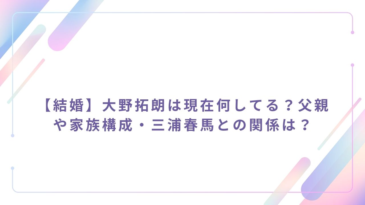 【結婚】大野拓朗は現在何してる?父親や家族構成・三浦春馬との関係は?