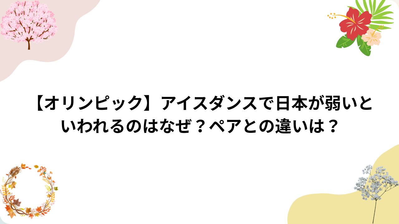 【オリンピック】アイスダンスで日本が弱いといわれるのはなぜ?