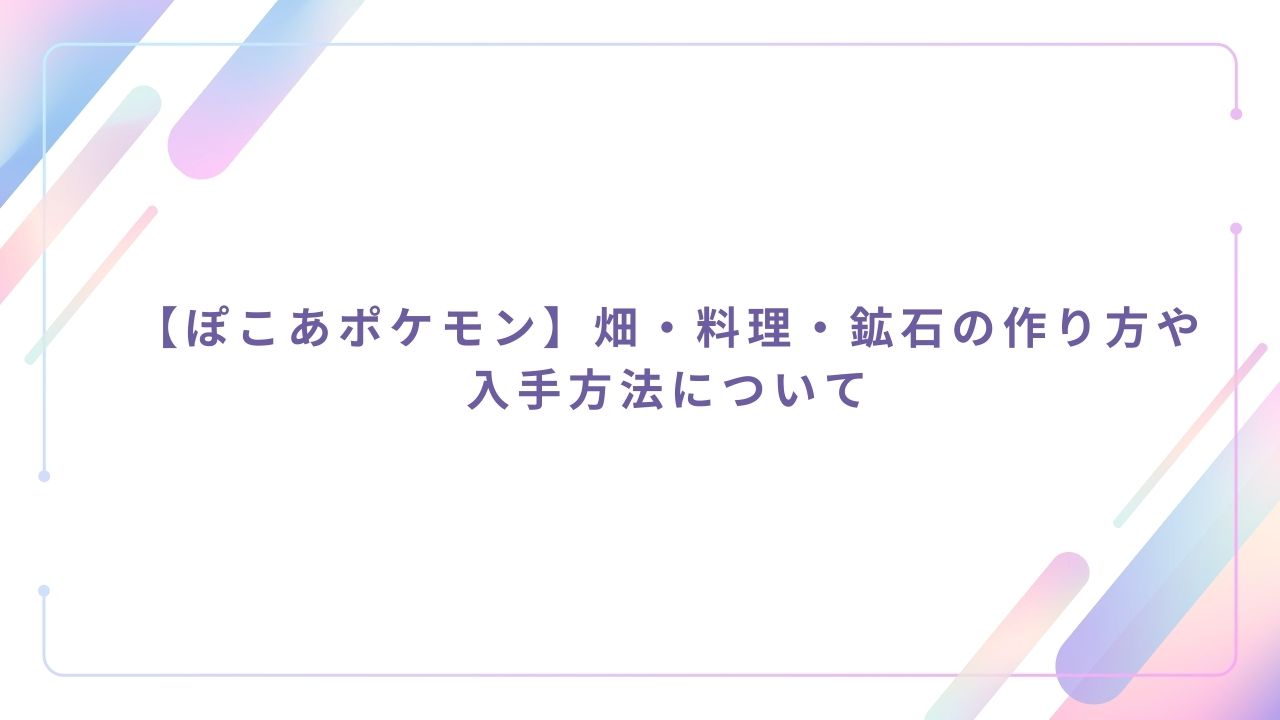 ぽこあポケモンにおいて、栽培や料理・鉱物採集は非常に大切です。