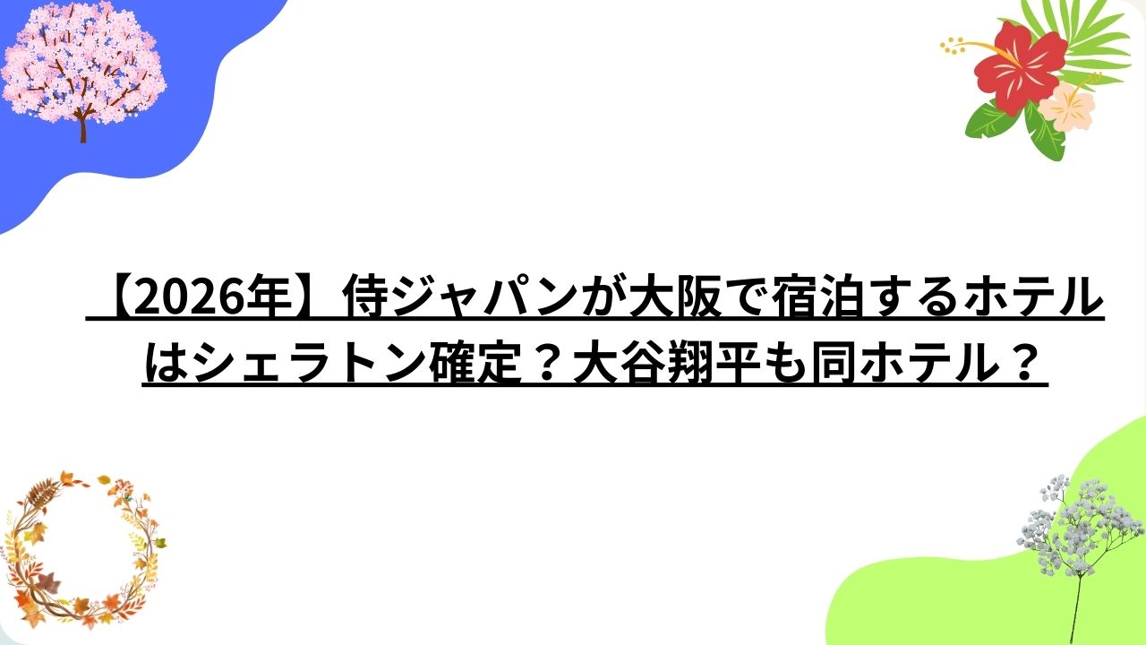 【2026年】侍ジャパンが大阪で宿泊するホテルは?
