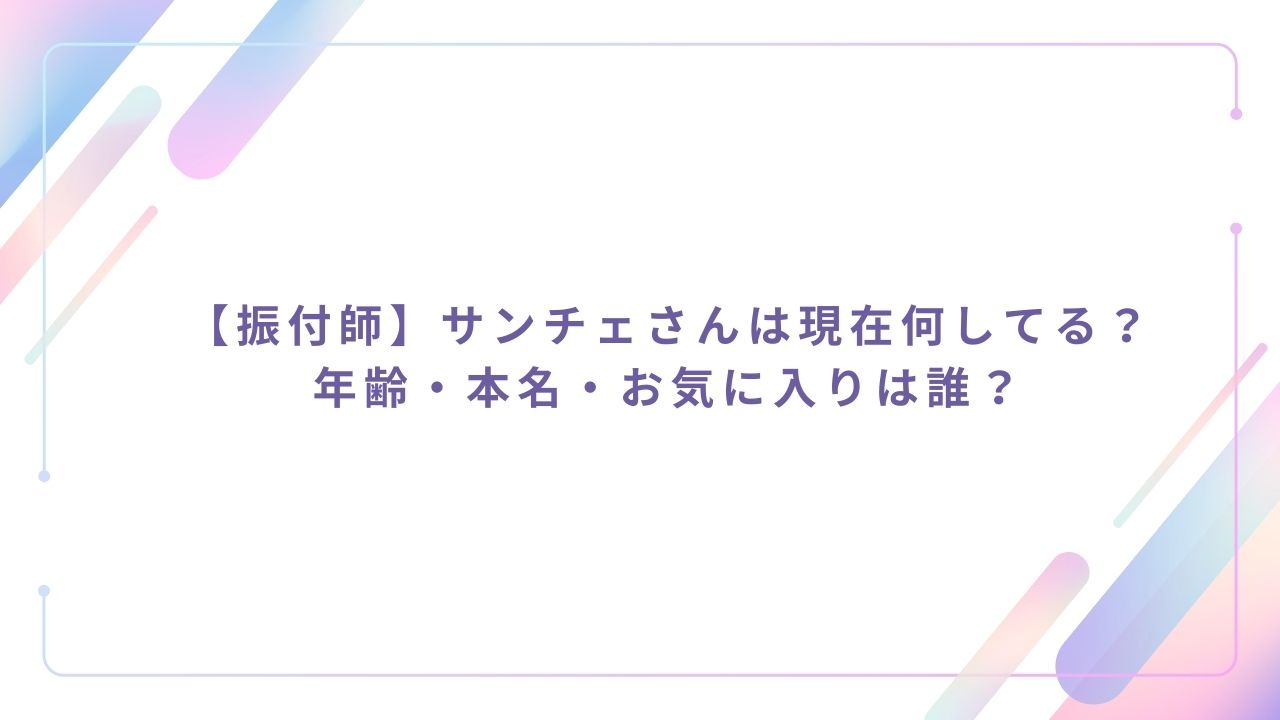 今回は、伝説の振付師サンチェさんは現在何してるか、年齢や本名、お気に入りは誰なのかをまとめていきたいと思います。