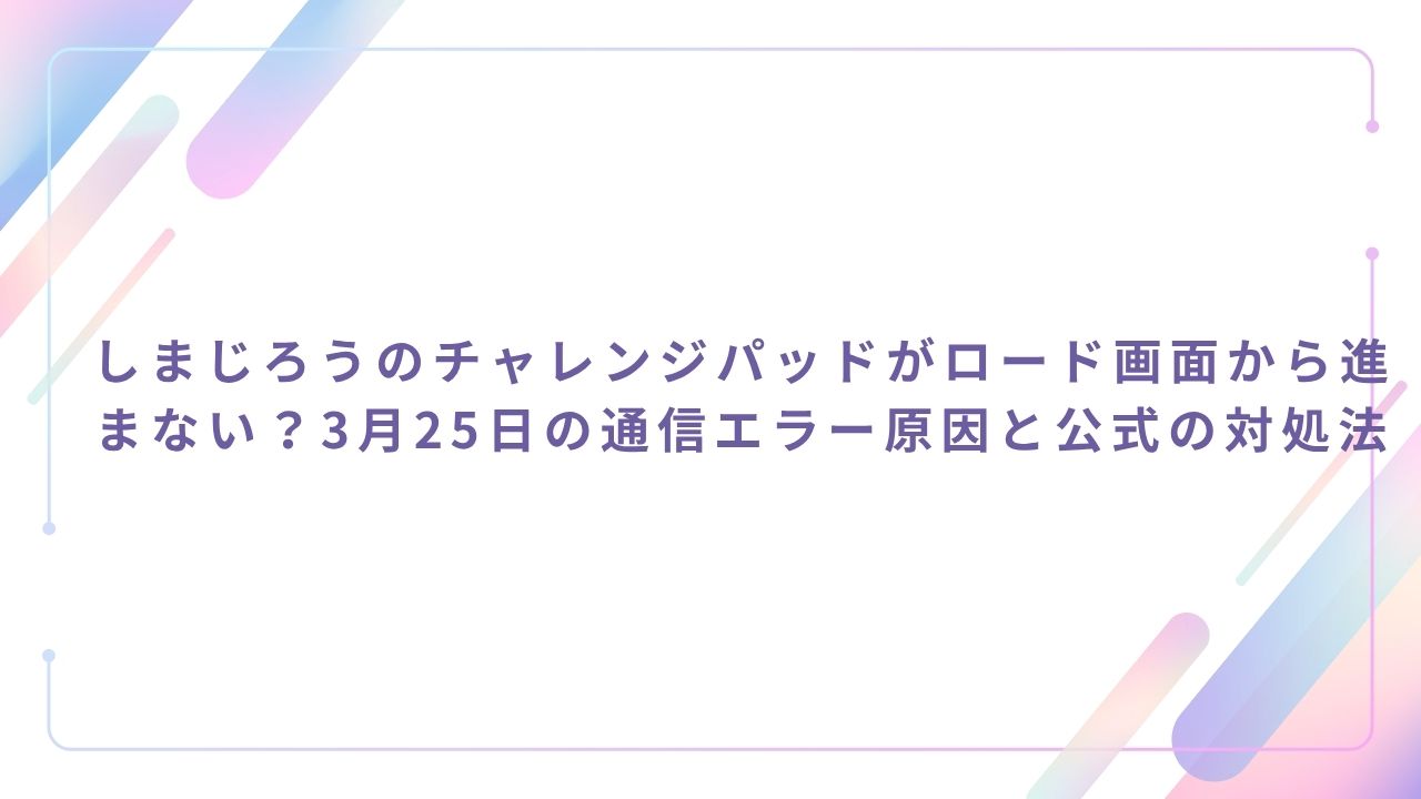 現在、しまじろうのチャレンジパッドでロードが進まない一番の原因は、新学期のデータ更新に伴うアクセス集中です。