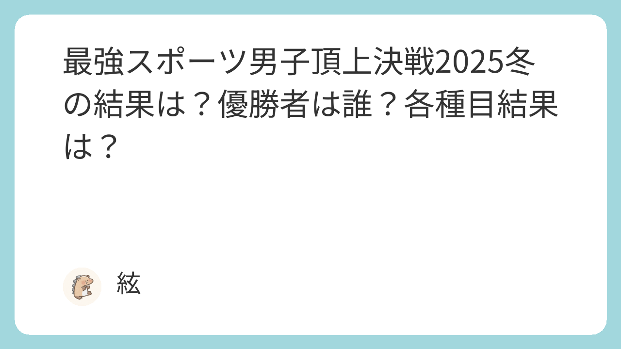 最強スポーツ男子頂上決戦2025冬の総合優勝者は、○○さんでした。