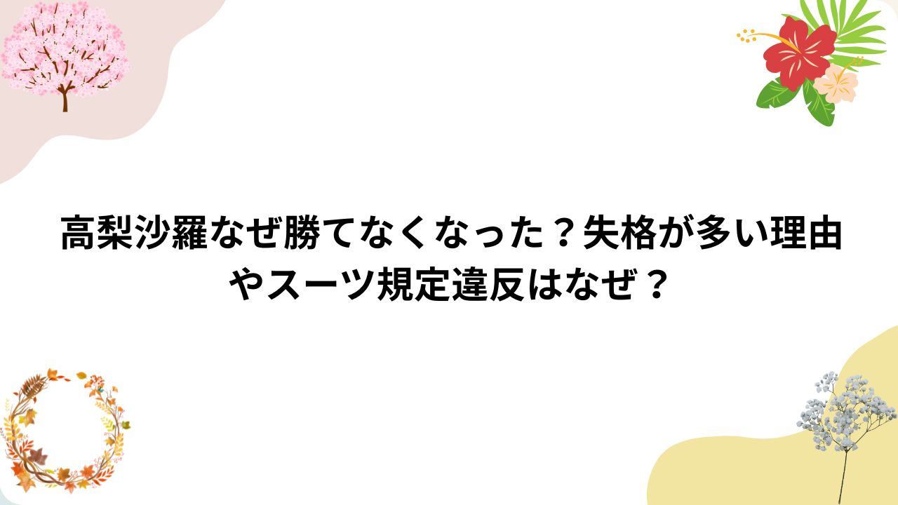 スーツ規定違反や板長違反は、高梨選手だけでなく世界中の選手が毎シーズン一定数引っかかっており、あるシーズンはスーツ違反が「例年の倍」に増えたと報じられています。