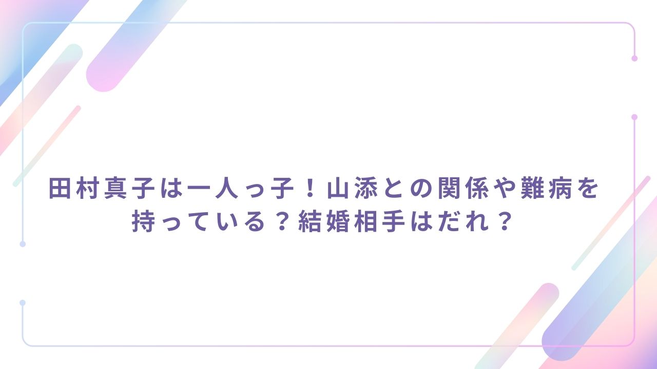 そこで、今回は田村真子さんは一人っ子か・相席スタートの山添さんとの関係・難病をもたれているのか・結婚相手についてまとめていきたいと思います。
