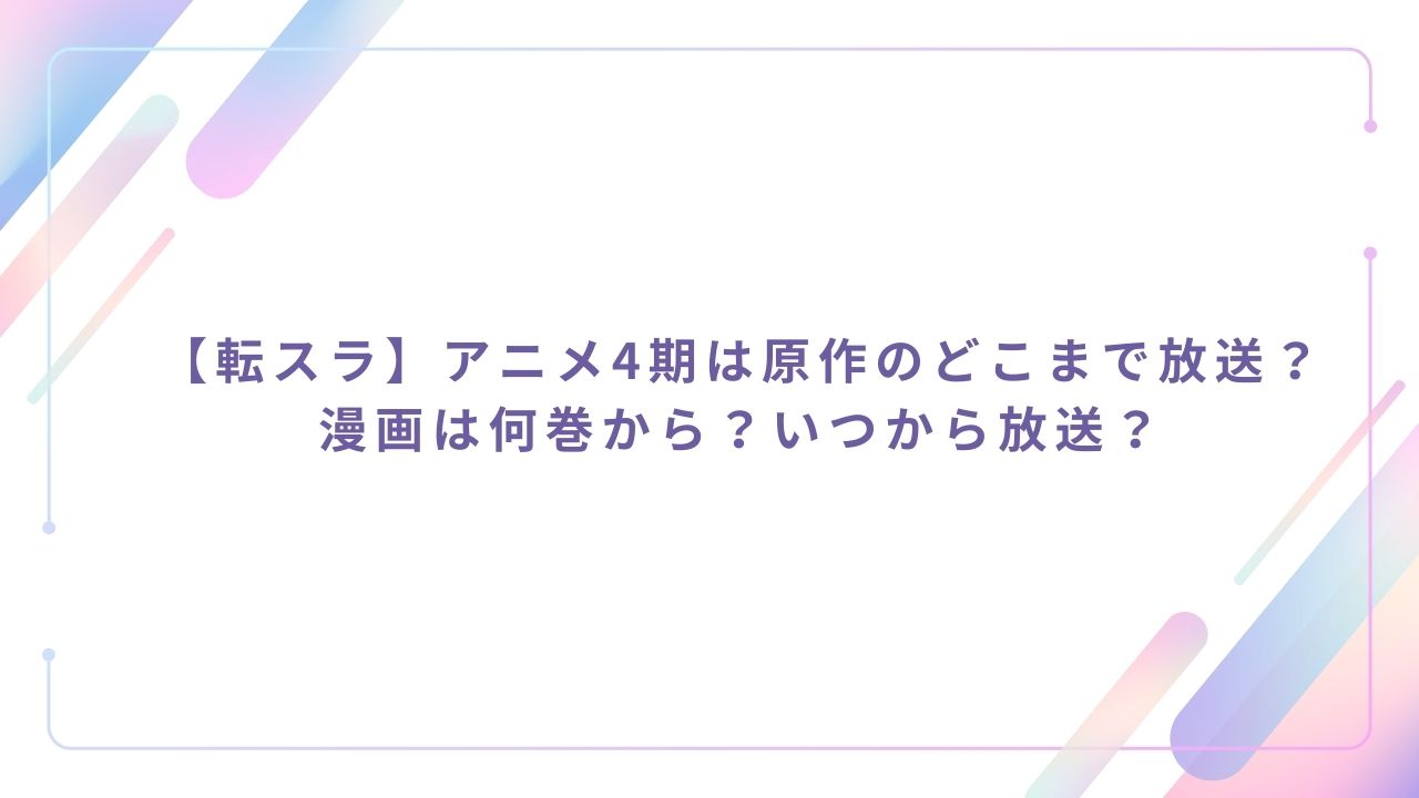 【転スラ】アニメ4期は原作のどこまで放送?漫画は何巻から?いつから放送?