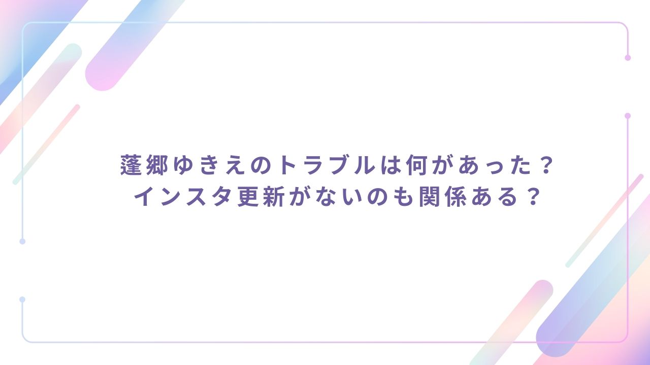蓬郷ゆきえのトラブルは何があった?インスタ更新がないのも関係ある?