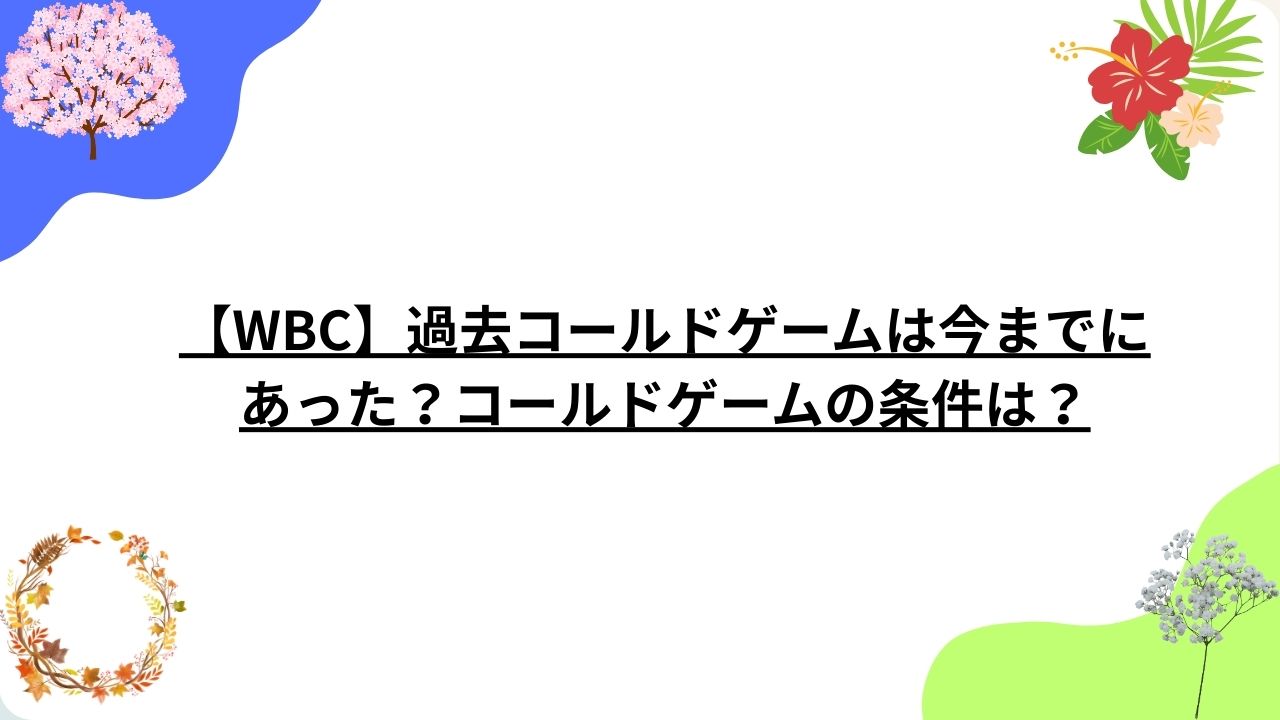 【WBC】過去コールドゲームは今までにあった?(侍ジャパン)