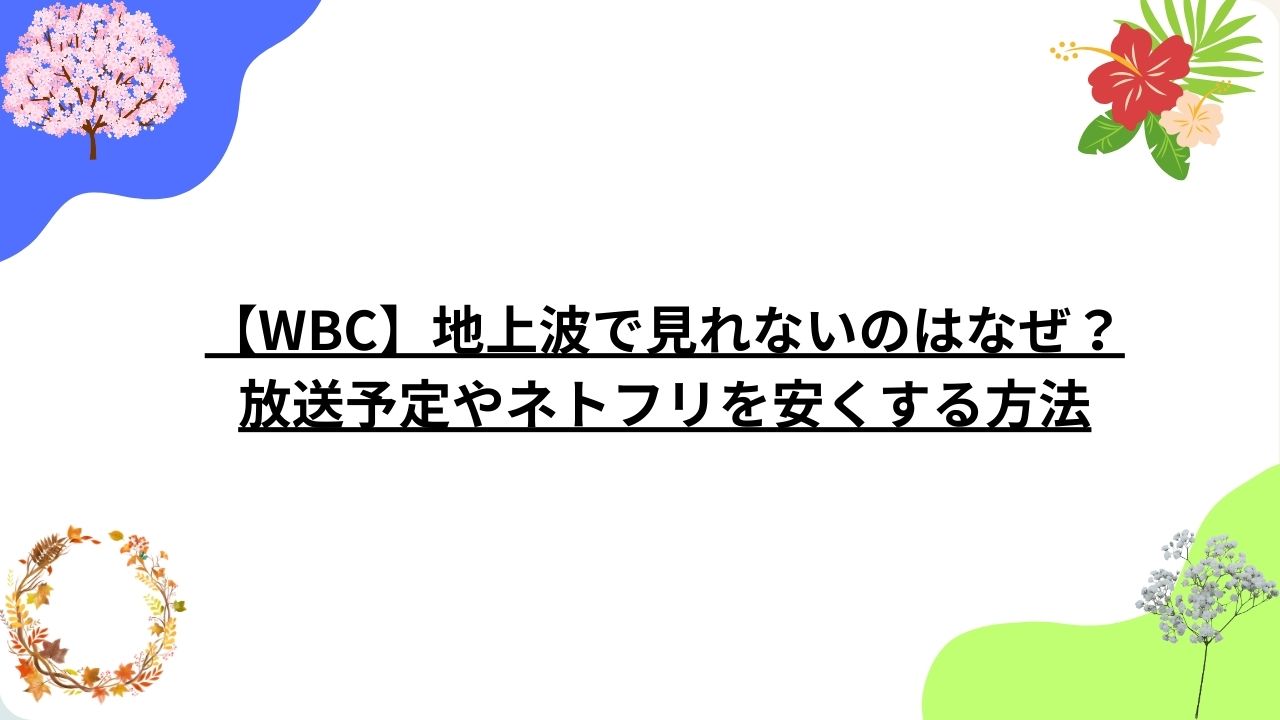 【WBC】地上波で見れないのはなぜ?