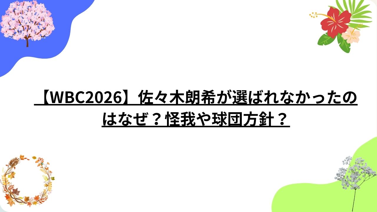 2026年のWBCの大会で、佐々木朗希選手が侍ジャパンのメンバーに選ばれなかった理由として、