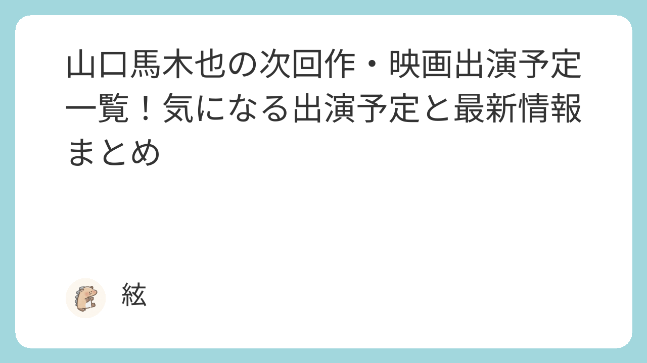 山口馬木也の次回作がどのような作品になるのか、そしてどんな新しい表情を見せてくれるのか、俳優としての新たな一面が期待されています。