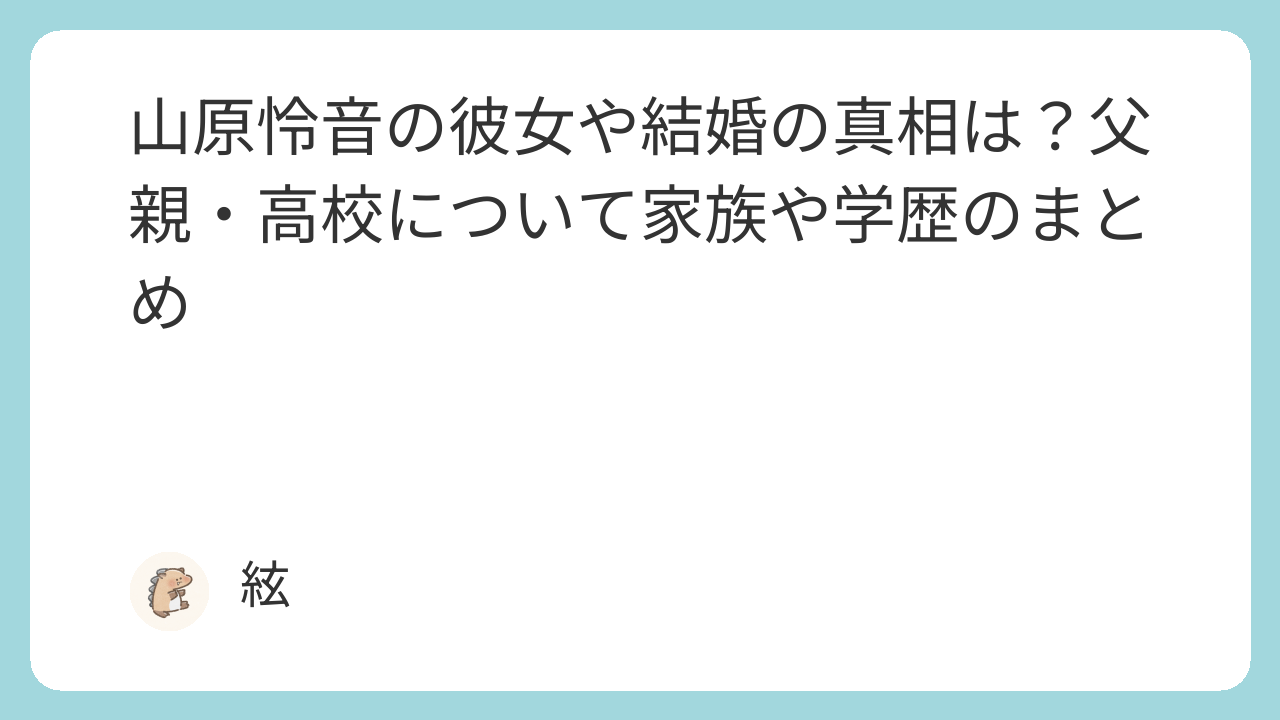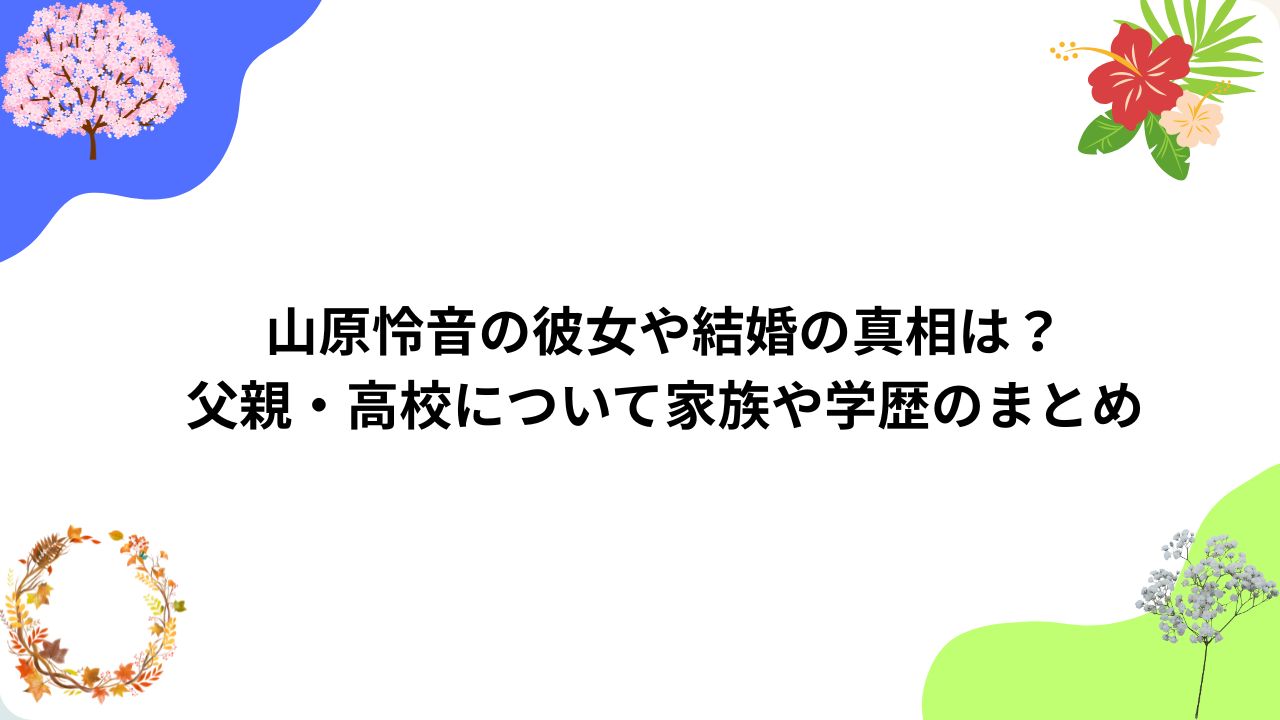 今回は、山原怜音さんの彼女・結婚について、父親・高校といった家族や学歴についてまとめていきたいと思います。